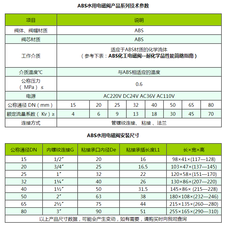 【產(chǎn)品型號】DN65 ABS化工水用電磁閥