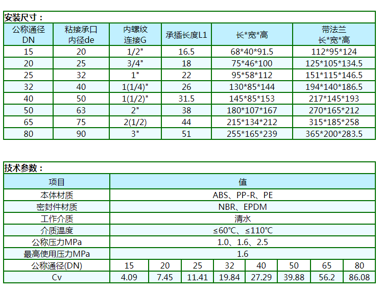 本產(chǎn)品民用系列選用國際通用型食品級工程塑料(ABS、PP-R、PE等)注造。工業(yè)用系列選用進(jìn)口阻燃型高強(qiáng)度工程塑料(PC等)注造。產(chǎn)品具有重量輕、耐腐蝕、不生銹、不結(jié)垢、導(dǎo)冷不結(jié)霜、導(dǎo)熱系數(shù)低,絕緣性能好,環(huán)保衛(wèi)生等優(yōu)點(diǎn)。啟閉原理上:采用浮動(dòng)閥芯,利用流體壓力差,誘導(dǎo)式啟閉的專利技術(shù)成果。因啟閉時(shí)無磨損(屬接觸型啟閉),而解決了傳統(tǒng)閥門因強(qiáng)制性啟閉而造成的啟閉部件和密封件磨損所引起的“跑、冒、滴、漏”的歷史性難題。它具有安裝使用方便,節(jié)能節(jié)水效果顯著(可節(jié)約傳統(tǒng)閥門的外泄內(nèi)漏所浪費(fèi)掉的水),使用壽命長及物美價(jià)廉等特點(diǎn)。