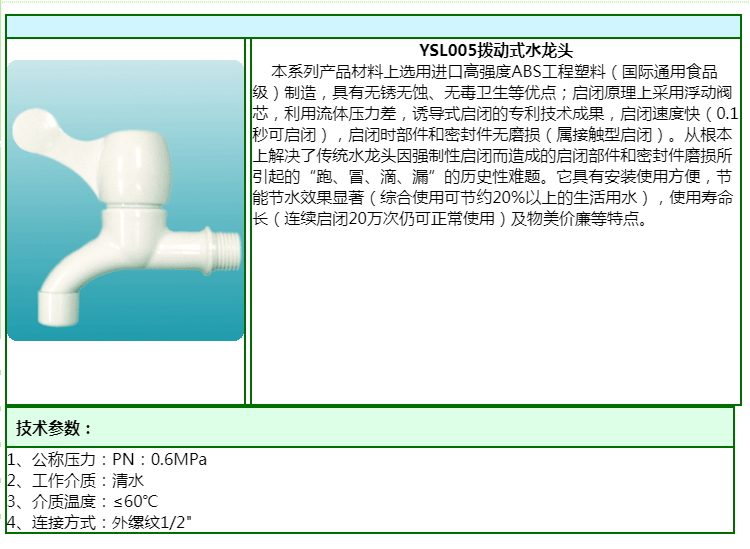 【產(chǎn)品型號】YSL005撥動式水龍頭