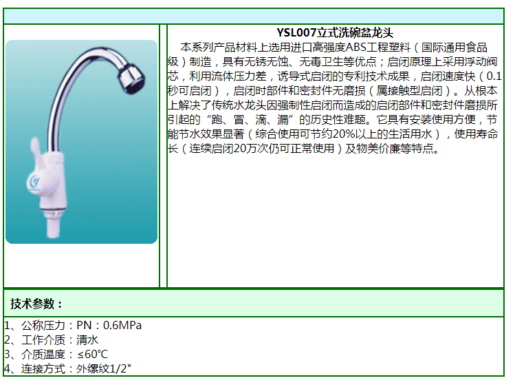 【產(chǎn)品型號】YSL007立式洗碗盆龍頭