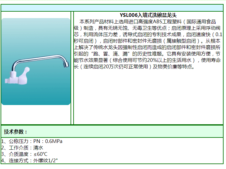 【產(chǎn)品型號(hào)】YSL006入墻式洗碗盆龍頭